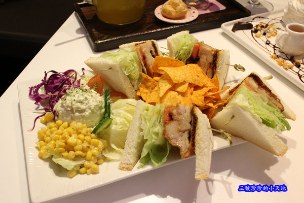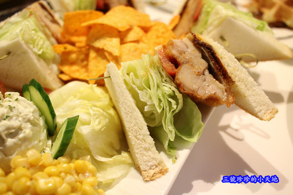 ▼除了主要的雞腿排三明治之外, 還有多力多滋/生菜/馬鈴薯沙拉/玉米粒,給人一種健康滿分的感覺.