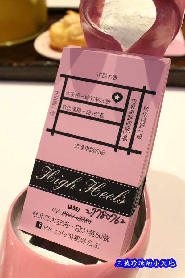 今天珍珍要跟大家分享一間位於台北東區忠孝敦化站附近,光聽店名就很夢幻的餐廳:高跟鞋公主Hs Cafe,所以說今天珍珍我是準備來當公主的!喔~不!是用餐啦!高跟鞋公主Hs Cafe就位於和茗甘味處旁邊幾間店而已,相當好找,只不過中文的店名會比英文店名小很多唷!大家要前往用餐時要稍微注意一下。本文經知名部落客三號珍珍全文授權,未經同意嚴禁以任何型式的複製、轉載、引用。